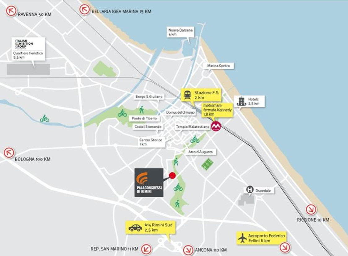 Rimini vanta distanze brevi, centro storico, hotel sul lungomare, stazione, ristoranti, Palacongressi, tutto a portata di mano.